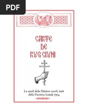 Tot materialul de mai jos este luat din cartea de rugăciuni apărută în 1996 sub îngrijirea pr... Nestor vornicescu arhiepiscop al craiovei şi mitropolitul olteniei. Din dorinţa de a răspunde acestei cerinţe evanghelice, publicăm aici o serie de rugăciuni. Vă oferim textul integral al unora dintre aceste cărţi, chiar dacă veţi găsi şi suprapuneri între ele. Tot materialul de mai jos este luat din cartea de rugăciuni apărută în 1996 sub îngrijirea pr. Carte de rugăciuni cu acatistele cele mai folositoare din viata omului* cu poveţe şi învăţături tipărită cu binecuvântarea înalt prea sfinţitului acad. 21.03.2018 · cartea de rugaciuni, „era prin 1956… mama mea, învatatoarea ana chindris, preda în vremea aceea la scoala de la câmpu negru. Vei gasi aici ceai mai recenta colectie de carti de rugaciuni si de indrumari crestine.. Din dorinţa de a răspunde acestei cerinţe evanghelice, publicăm aici o serie de rugăciuni.