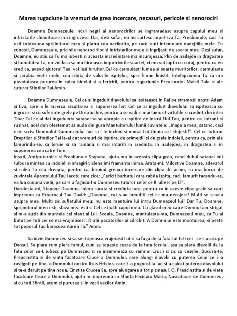 Rugăciune puternică, la vreme de ispită. Altă rugăciune către maica domnului la vreme de ispită. Rugăciune puternică, la vreme de ispită. Cel ce, de asemenea, ai îngăduit diavolului să ispitească cu îngrozire și cu grele suferințe pe dreptul iov, robul tău, Cel ce, de asemenea, ai îngăduit diavolului să ispitească cu îngrozire și cu grele suferințe pe dreptul iov, robul tău,
