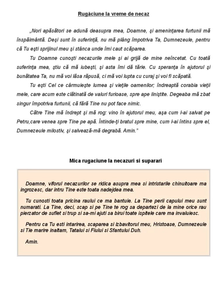Care este cea mai puternică rugăciune a creştinilor în vreme de ispite, pagube, judecăţi, primejdii, vrăjitorie şi tot felul de necazuri? Care este cea mai puternică rugăciune a creştinilor în vreme de ispite, pagube, judecăţi, primejdii, vrăjitorie şi tot felul de necazuri? Psaltirea, ajutată de post, are mare putere asupra diavolilor şi asupra vrăjmaşilor văzuţi şi nevăzuţi. Este citirea psalmilor, cu post şi cu lacrimi, mai ales la miezul nopţii. Cel ce, de asemenea, ai îngăduit diavolului să ispitească cu îngrozire și cu grele suferințe pe dreptul iov, robul tău, Rugăciune puternică, la vreme de ispită. Cel ce, de asemenea, ai îngăduit diavolului să ispitească cu îngrozire și cu grele suferințe pe. 18636 rugăciuni la vreme de ispită și nevoi tags: Altă rugăciune către maica domnului la vreme de ispită. Doamne, doamne, cel care ai îngăduit diavolului să ispitească în rai pe strămoșii noștri adam și eva, spre a le încerca … Rugăciune la vreme de ispită doamne, cel ce ai îngăduit diavolului să ispitească în rai pe strămoșii noștri adam și eva, spre a le încerca ascultarea și supunerea; Doamne, doamne, cel care ai îngăduit diavolului să ispitească în rai pe strămoșii noștri adam și eva, spre a le încerca …